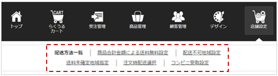 機能メニューの例(配送方法設定)
